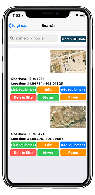 Define a new site pining the location and enter all the site including pictures, unique QR Codes